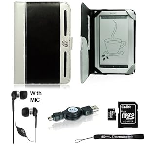 Black Grey Agenda Lining Leather Flip Jacket Portfolio Cover Carrying Case for Sony PRS-950 Electronic Reader eReader Device ( PRS 950 PRS950 )(Compatible with all colors) + Indlues a 4-Inch Determination Hand Strap + Includes a Crystal Clear HD Noise Filter Handsfree with Mic and Mute Button + Includes a 4GB Micro SD Card with SD Adaptor + Includes a Retractable USB Data Sync Cable for your eReader (Mini USB Type)