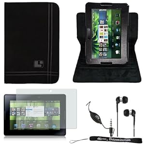 Black Nubuck Expediency Flip Stand Alone Case Cover Protector For Blackberry Playbook Table Notebook Organizer Device + Black Clear High Quality HD Noise Filter Ear buds Earphones Headphones with a MIC ( 3.5mm Jack ) + a Anti-Glare Screen Protector + Includes 4-inch ebigvalue Determination Hand Strap