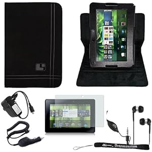 Black Nubuck Expediency Flip Stand Alone Case Cover Protector For Blackberry Playbook Table Notebook Organizer Device + a Black Micro Car charger + a Black Micro Home charger + Black Clear High Quality HD Noise Filter Ear buds Earphones Headphones with a MIC( 3.5mm Jack ) + a Anti-Glare Screen Protector + Includes 4-inch ebigvalue Determination Hand Strap