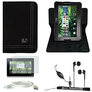 Black Nubuck Expediency Flip Stand Alone Case Cover Protector For Blackberry Playbook Table Notebook Organizer Device + White USB data cable + Black Clear High Quality HD Noise Filter Ear buds Earphones Headphones with a MIC( 3.5mm Jack ) + a Anti-Glare Screen Protector + Includes 4-inch ebigvalue Determination Hand Strap