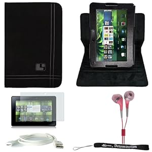 Black Nubuck Expediency Flip Stand Alone Case Cover Protector For Blackberry Playbook Table Notebook Organizer Device + White USB data cable + Pink Clear High Quality HD Noise Filter Ear buds Earphones Headphones ( 3.5mm Jack ) + a Anti-Glare Screen Protector + Includes 4-inch ebigvalue Determination Hand Strap
