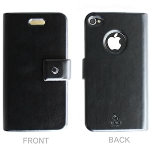 JustCase Fernice Diary Applied Italian Leather Flip Wallet Style iPhone 4 4S Case Cover (Black)