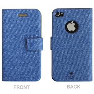 JustCase Fernice Diary Applied Italian Leather Flip Wallet Style iPhone 4 4S Case Cover (Blue)